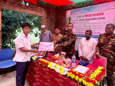 সম্প্রীতি ও উন্নয়ন প্রকল্পের আওতায় নানিয়ারচর সেনা জোন কর্তৃক এপ্রিল ২০২৬ (শনিবার) রাঙ্গামাটি জেলার নানিয়ারচর উপজেলাধীন বুড়িঘাট ইউনিয়নের আওতাধীন বুড়িঘাট আদর্শ নিম্ন মাধ্যমিক বিদ্যালয়ের এস.এস.সি পরীক্ষার্থীদের বিদায়ী সংবর্ধনা প্রদান ও শিক্ষা সামগ্রী বিতরণ করা হয়েছে।